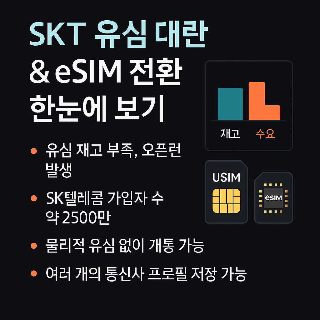 SKT유심대란, eSIM전환, 유심해킹, SIM스왑방지, 모바일보안, 통신인프라, 무상유심교체, eSIM개통, 전자SIM보급, 개인정보유출